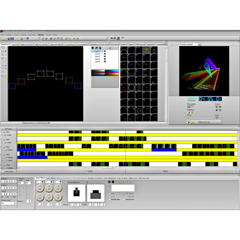 MEDIALAS M III ПРОГРАММА УПРАВЛЕНИЯ ЛАЗЕРНЫМИ ПРОЕКТОРАМИ.Руссифицированное профессиональное программное обеспечение для создания лазерного шоу , только Soft + USB ключ (не включает в себя HyperPort Pro DMX).MEDIALAS M III - полная версия программного обеспечения в системах лазерного управления MediaLas. Среди особенностей версии MEDIALAS M III функции MTC и SMPTE Timecode, визуализатор DirectX с 3D просмотром, функция геометрической коррекции, технология исправления ошибок DRC (Design Rule Check), импорт и экспорт фреймов и фреймлистов в ILDA, управление по LAN. Имеется поддержка нескольких дисплеев.Пользовательский интерфейс MEDIALAS M III локализован на русский язык.