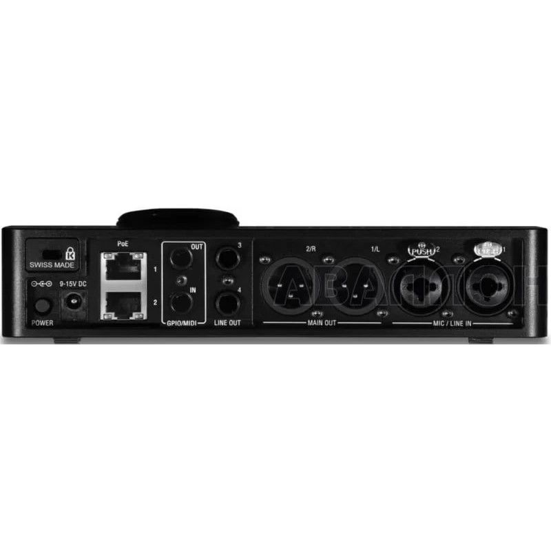 Anubis имеет два комбинированных XLR/TRS входа с высококлассными микрофонными предусилителями, имеющими коэффициент усиления 66 дБ, фазовый реверс, НЧ фильтры и возможность подачи фантомного питания 48 В. Также прибор имеет 2 линейных входа, 2 XLR выхода, 2 линейных TRS выхода, вход и выход GPIO / MIDI и 2 независимых выхода на наушники.