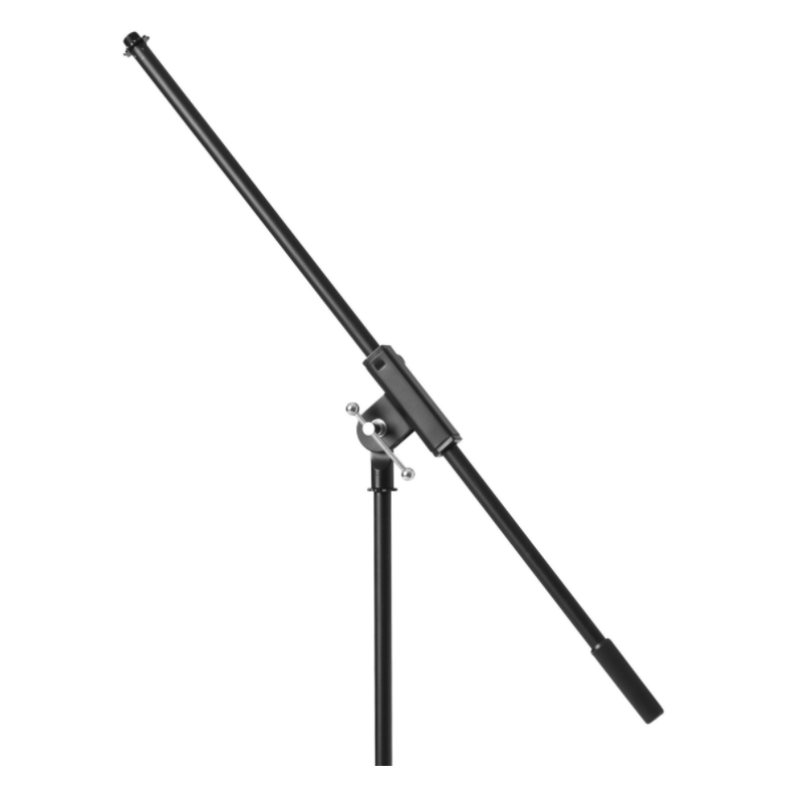 Штанга с длиной плеча 795 мм в сочетании с поворотной муфтой для регулировки высоты позволяет расположить микрофон так, как вам нужно, а складное основание штатива надежно удерживает эту стойку.