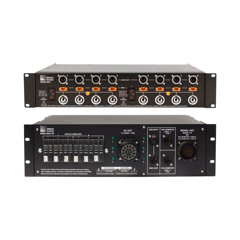 Модуль MDM-832 распределяет до восьми каналов переменного тока, симметричного аудиосигнала и RMS™ на громкоговорители Meyer Sound, повышая мобильность и удобство использования активных сценических мониторов и громкоговорителей с низким и средним потреблением тока.