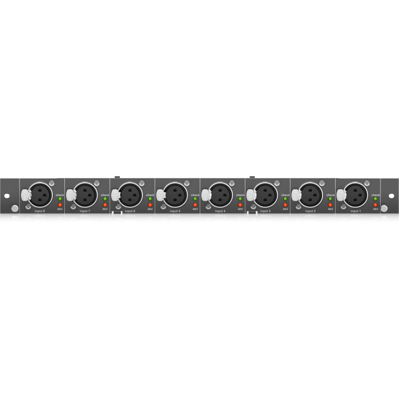 - 8 линейных/микрофонных выходов на разъемах Neutrik XLR c микрофонными предусилителями Midas