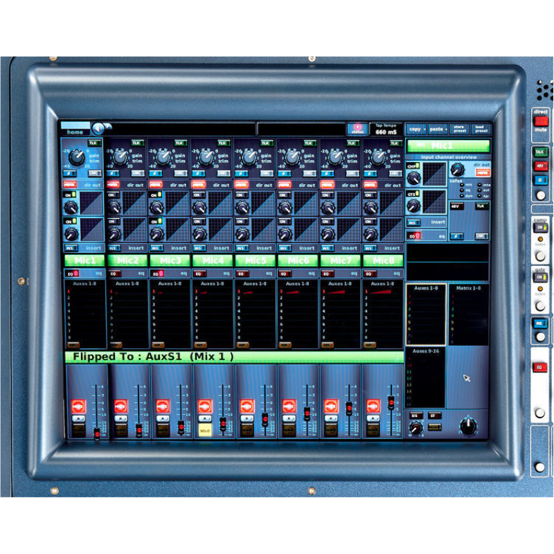 При необходимости пульт можно доукомплектовать модулями, еще более расширяющими его коммутационные возможности. Среди других функциональных возможностей Midas PRO1-TP можно отметить наличие до 28 графических 31-полосных эквалайзеров Klark Teknik DN370, 12 многоканальных процессоров эффектов, 8 VCA групп и 192 MCA группы. Контролировать работу пульта можно с помощью 15-дюймового дисплея, высокая яркость которого обеспечивает комфортное пользование даже при повышенном уровне внешней освещенности.