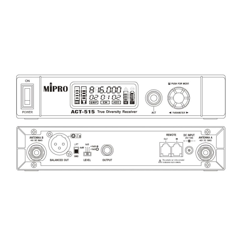 Mipro ACT-515 - Одноканальный полурэковый 1/2U узкополосный UHF приёмник