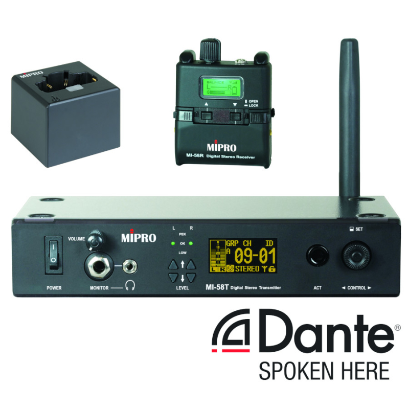 Mipro MI-58RT-DNT - Комплект цифровой (ISM 5.8 GHz) персональной мониторной радиосистемы с встроенным аудиопротоколом DANTE, работающую в нелицензируемом диапазоне частот 5,8 ГГц.