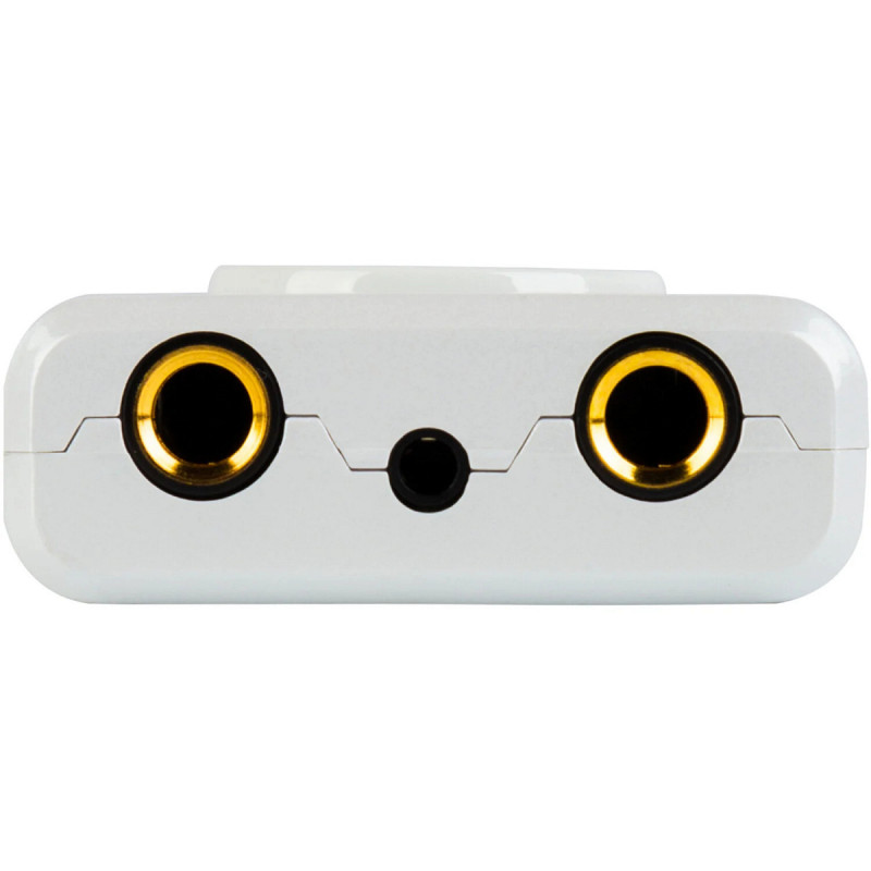 Вход и выход представлены разъемами 1/4'' Jack TS. Рядом с ними располагается выход для наушников на разъеме 1/8'' Jack TRS. Для питания используется литий-ионный аккумулятор с емкостью 1900 мАч, который обеспечивает до 4.5 часов автономной работы. Зарядка осуществляется через порт USB-C (USB 2.0). При подключении к компьютеру можно использовать функционал встроенного аудиоинтерфейса и записывать аудиосигнал. Кабель USB-C to USB-A и нейлоновый чехол поставляются в комплекте.