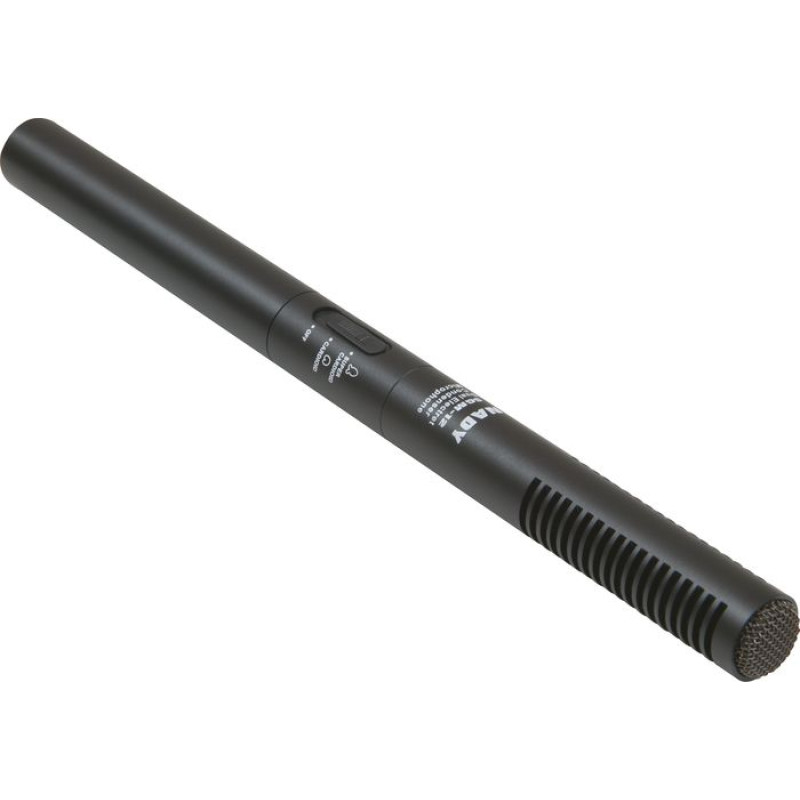 Nady SGM-12 микрофон-пушка, двойной электретный конденсаторный элемент, кардиоида/суперкардиоида, лёгкая и прочная металлическая конструкция, питание 1 батарейка АА, или NiMH аккумулятор, ветрозащита.