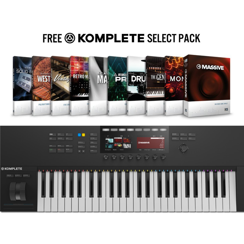 Зарегистрируйте свое оборудование, чтобы загрузить программное обеспечение KOMPLETE KONTROL, а также KOMPLETE 11 SELECT бесплатно (11 премиальных инструментов и эффектов: Massive, Monark, The Gentleman, Drumlab, Reaktor thomann Prism, Scarbee Mark I, Retro Machines, Vintage Organs, West Африка, Solid Bus Comp и Replica)