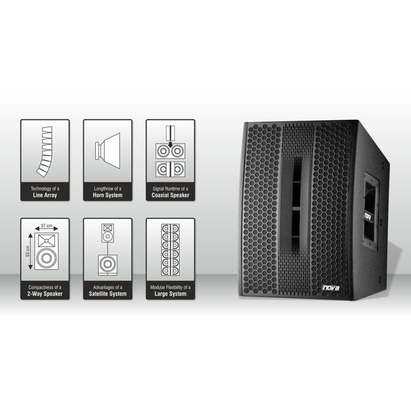 Активный звукоусилительный комплект, 2х M 318 SUB активные сабвуферы, 18”, 1 x 2500 Вт. + 2 x 800 Вт, 136дБ, 2х M 5 пассивные сателлиты, 6x5"/3x1,75", 800 Вт RMS, 2х MB5 крепления, NOVA