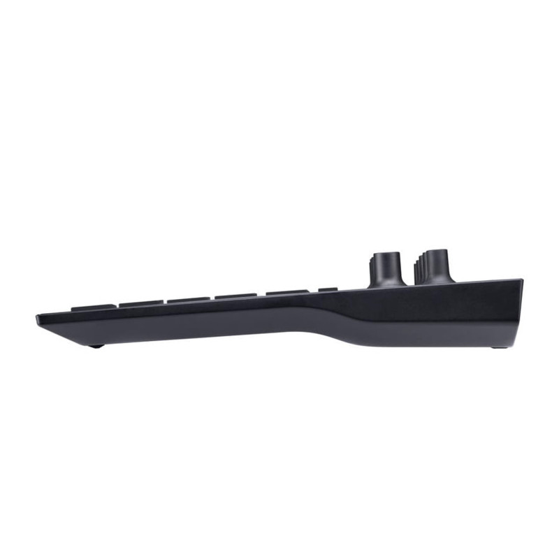 Управление и программирование партиями происходит при помощи матрицы из 4 x 8 пэдов RGB, чувствительных к силе нажатия, а управление параметрами с помощью 10 чувствительных ручек.