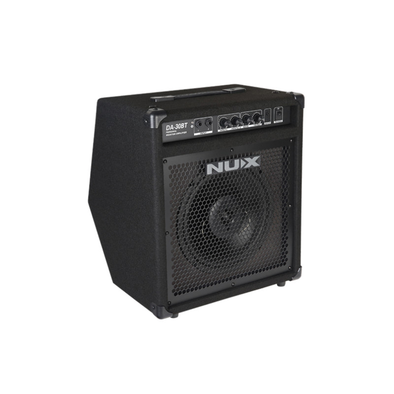 NUX DA-30BT оснащен усилителем мощности 30 Вт, и 10" широкополосным динамиком. Частотная характеристика отлично подходит для разнообразных ударных инструментов, яркие высокие частоты, насыщенный бас. Двухполосный эквалайзер позволяет настроить звучание. DA-30BT оснащен Bluetooth подключением, что позволяет музыканту проще играть свои песни с усилителем.