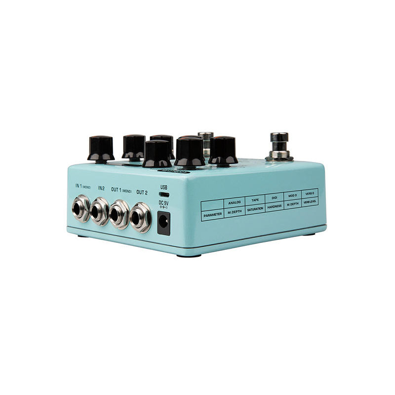 Цифровой дилей (80 мс - 1000 мс) основан на современном алгоритме цифровой задержки с волшебным компрессором и фильтром. Изучив десятилетия эволюции алгоритма задержки, Nux заметили, что музыкантов не устраивает звук математической цифровой задержки. Поэтому они добавили немного нецифрового аромата, вдохновленного Strymon и Neunaber, сделав звук намного более музыкальным.