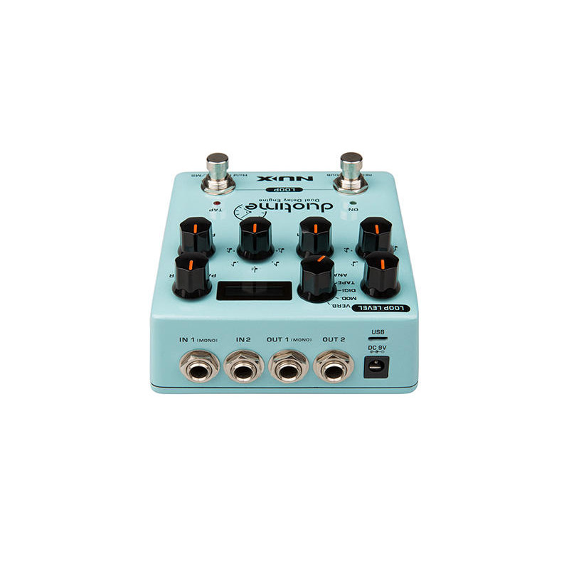 Duotime - это стерео педаль дилея с независимыми регуляторами времени/доли и повтора. В 80-х все профессиональные музыканты использовали рэковые эффекты для стереозадержки. Это была золотая эра такой легендарной инженерии, как Lexicon Delta, TC 2290, Eventide H3000 и других. Когда Nux поговорили с "работающими музыкантами", то обнаружили, что они ищут стереодилей с компактными размерами и ультрапростым управлением. Поэтому были обсуждены абсолютно необходимые требования и разработан механизм двойного дилея Duotime. Он ультра-музыкальный и простой в эксплуатации.