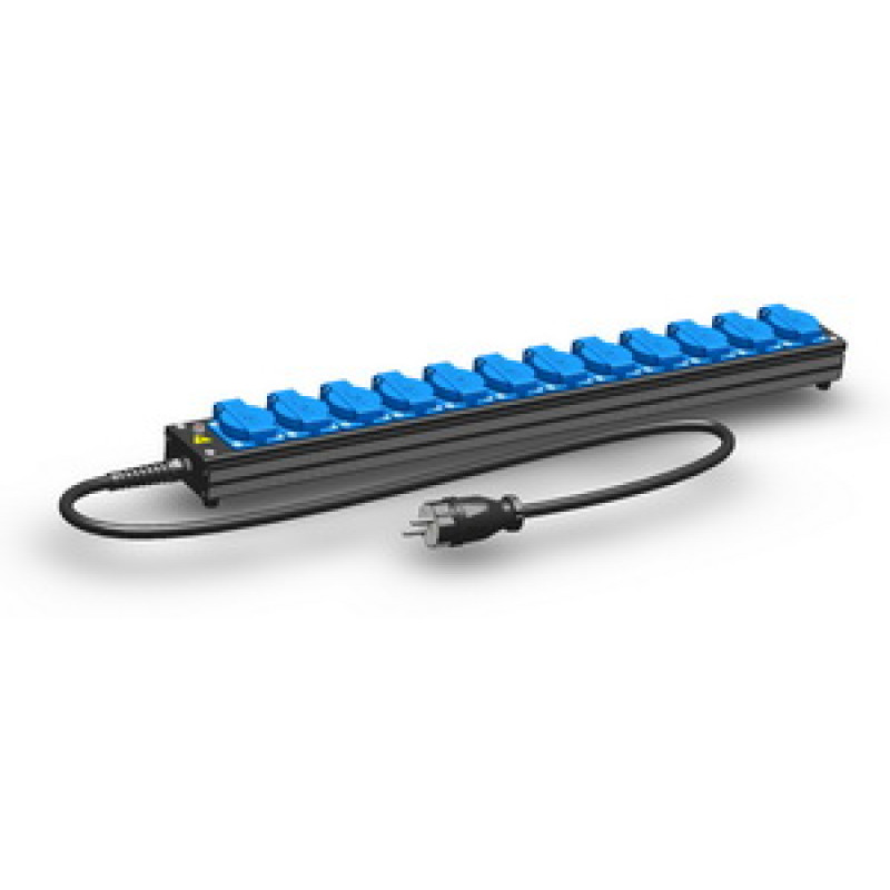 Partner-L PLM32040 дистрибьютор питания туровый низкопрофильный, 12 розеток PCE Schuko 16A 220V, ввод через 2-метровый резиновый кабель H07RN-F 3G2.5, вилка Schuko обрезиненная 16A, индикатор LED 220V, корпус из фирменного алюминиевого профиля и 1,5 мм стали. Габариты 678х73х63(h) мм, вес 1,5 кг.