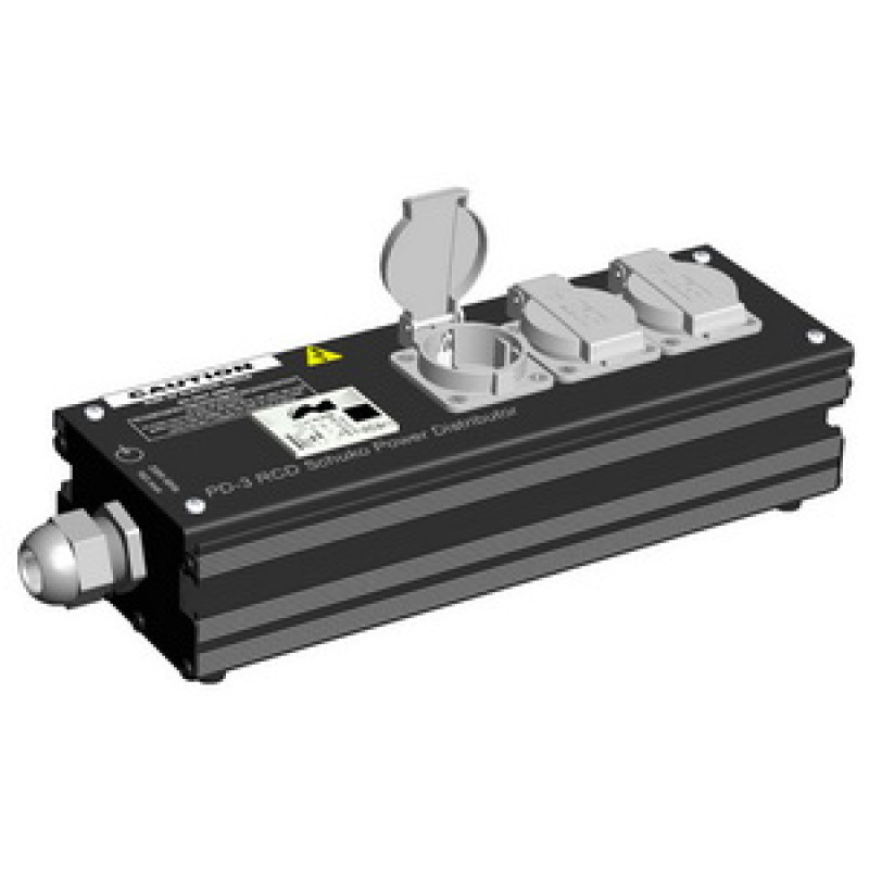Partner-LM PLM30350 дистрибьютор питания туровый с УЗО 30mA AC, 25A 10kA, ввод 220В 50Гц через 2-метровый резиновый кабель H07RN-F 3G2.5 и вилку PCE Schuko обрезиненную 16A, питание 220В, 50Гц, максимальный ток 16А, 3 розетки PCE Schuko 16A, корпус из фирменного алюминиевого профиля и 1,5 мм стали. Габариты 335х110х100 мм, вес 1,9 кг.