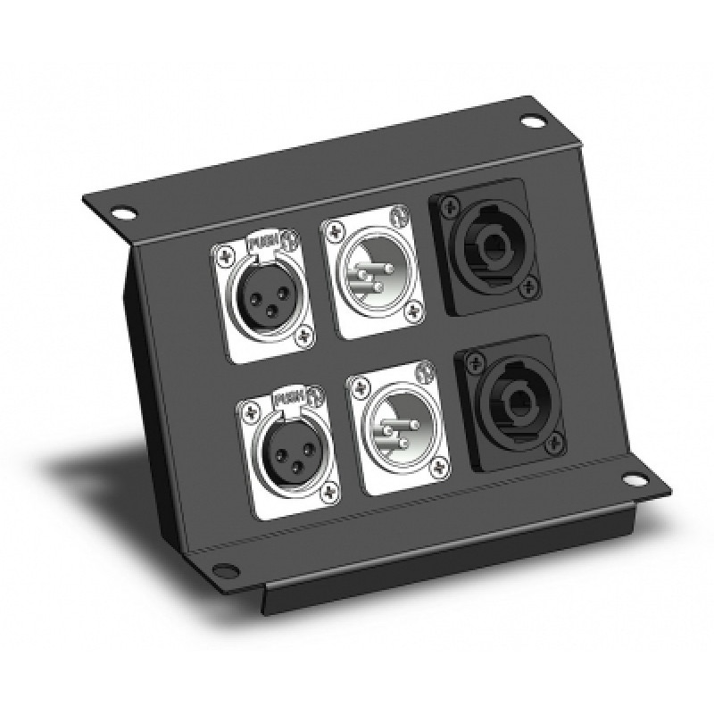 Partner-LМ PLM80060.1 панель с 2 разъемами XLR3 NC3MD-L-1, 2 разъемами NC3FD-L-1 и 2 разъемами Speakon NL4MP (с ответными кабельными частями) для напольного лючка PLM80000, PLM80500, PLM81000.