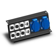 Partner-LМ PLM80120.8 панель с двумя розетками PCE Schuko 16A, 2 разъема XLR3F, 1 разъем XLR3M, 2 разъема RJ-45, 1 разъем HDMI для напольного лючка PLM80100, PLM80600, PLM80300.