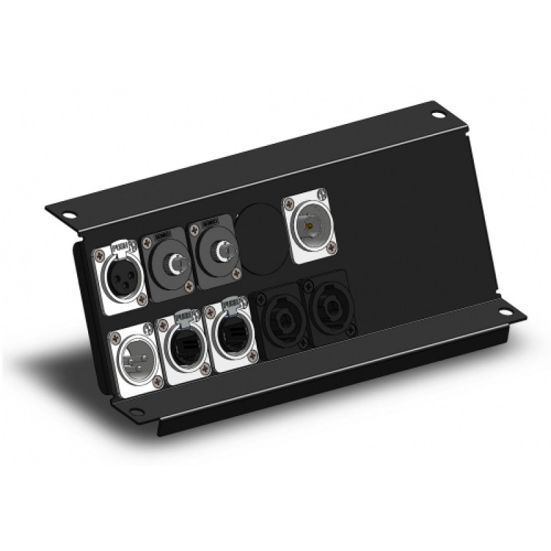 Partner-LM PLM80161.7 панель, 1 разъем XLR3F, 1 разъем XLR3M, 2 разъема ST, 2 разъема RJ-45, 1 разъем BNC, 2 разъема Speakon-4 для напольного лючка PLM80100, PLM80600, PLM80300.