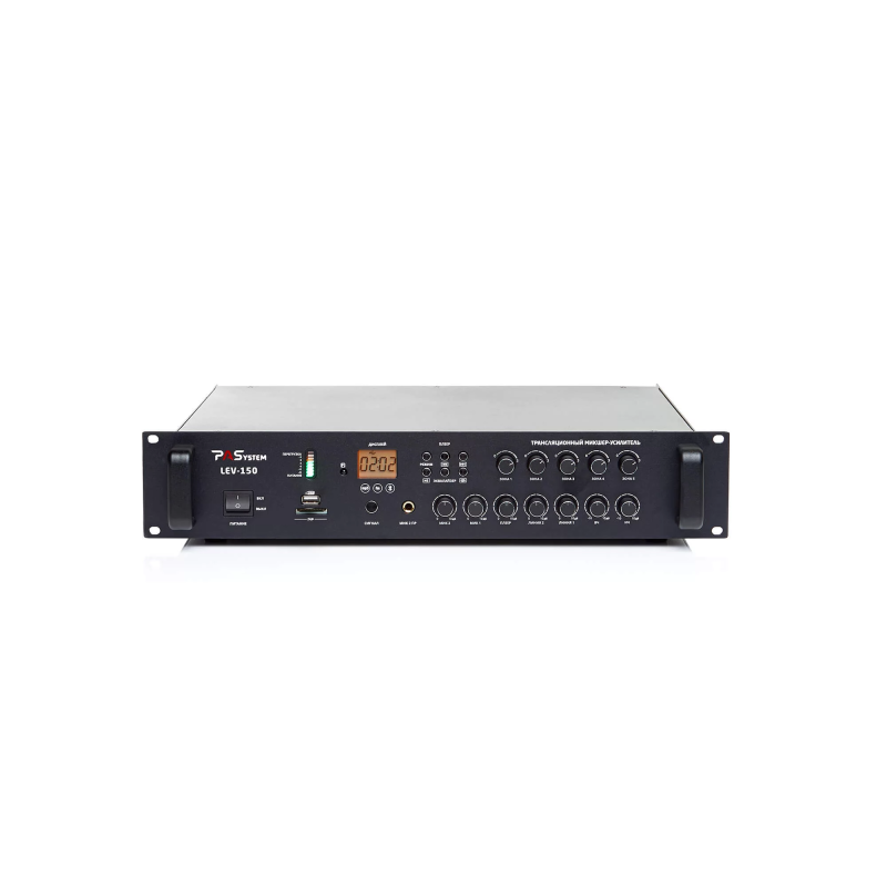 PASystem LEV-150 Трансляционный микшер-усилитель 5 зон с MP3-BT-FM плеером и модулем EMC