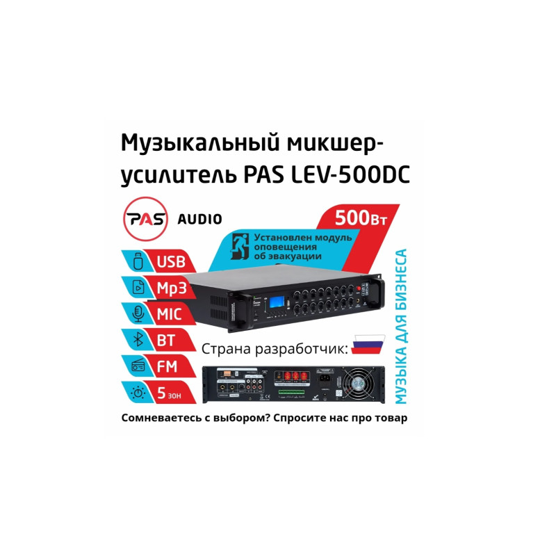 PASystem LEV-500DC Трансляционный микшер-усилитель 5 зон с MP3-BT-FM плеером и модулем EMC