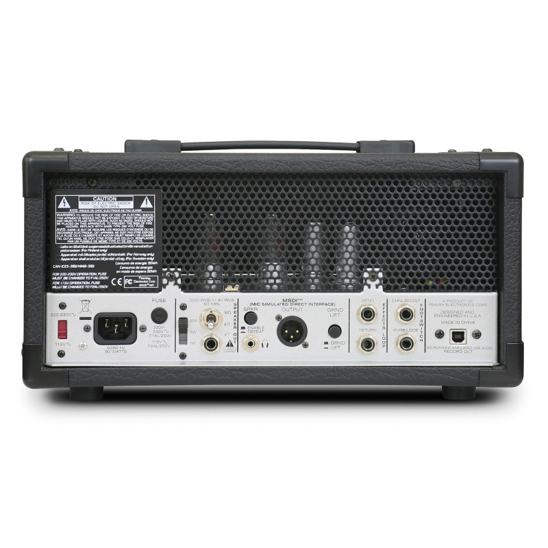 Задняя панель усилителя наполнена новшествами: линейный Direct-выход Peavey MSDI™ с симуляцией кабинета, USB-порт для записи, выход для наушников, функция отключения динамиков кабинета и аттенюатор на 1, 5 или 20 Вт.