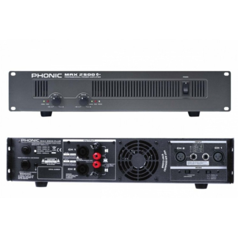 PHONIC MAX 2500 V10 усилитель мощности, позволяет получить на выходе 1500 Вт мощности на 8 Ом (мост моно) или 750 Вт на 4 Ом (стерео) - идеальное решение для средних и больших клубов, церквей, аудиторий и многих других заведений. Усилитель мощности Phonic MAX 2500 V10 позволяет получить на выходе 1500 Вт мощности на 8 Ом (мост моно) или 750 Вт на 4 Ом (стерео) - идеальное решение для средних и больших клубов, церквей, аудиторий и многих других заведений. Подключение к усилителям MAX 2500 V10 осуществляется через XLR или джек для наушников, а выход производится через разъемы Speakon или клеммы. MAX 2500 V10 имеет переключатели ground и возможность выбирать между режимами стерео, параллель и мост, что делает этот усилитель идеальным для использования в реальных рабочих условиях.