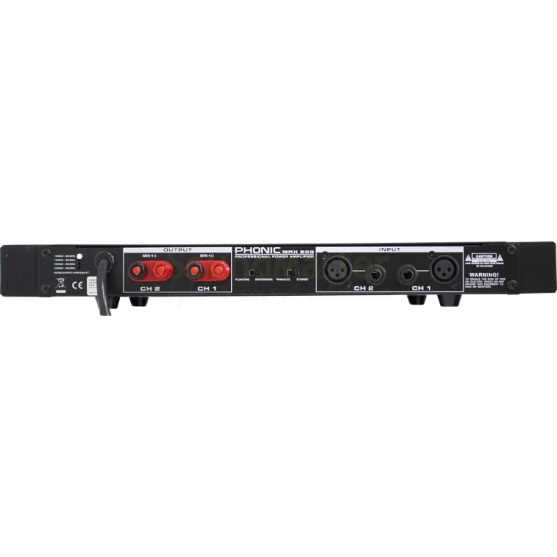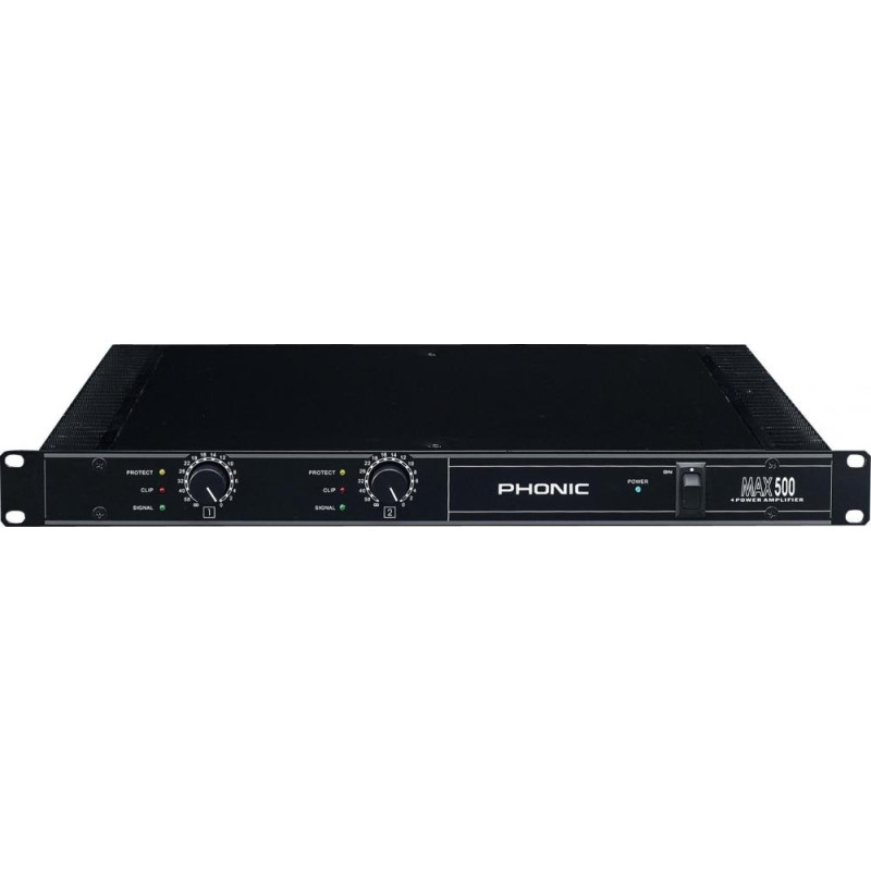 PHONIC MAX 500 V9 усилитель мощности, Class H, 2 x 120 Вт / 4 Ом, 2 x 90 Вт / 8 Ом, защита, высота 1U.выдаёт 120 Вт мощности на канал при 4 Омах, занимает одно место в рэке - идеальное решение для небольших помещений и для использования с целью мониторинга. Усилитель мощности Phonic MAX 500 выдаёт 120 Вт мощности на канал при 4 Омах, занимает одно место в рэке - идеальное решение для небольших помещений и для использования с целью мониторинга . MAX 500 имеет переключатель заземления и возможность выбора между стерео или параллельным режимами. Подключение к усилителю MAX 500 производится через XLR и джек для наушников, а выход через винтовые клеммы - делает этот усилитель идеальным для использования в реальных рабочих условиях.