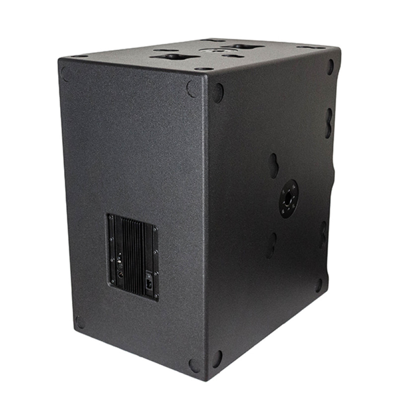 Высококачественный мощный активный сабвуфер. Прямоугольный корпус из многослойной фанеры высокого качества. Плотная устойчивая краска обеспечивает защиту, а ручки облегчают транспортировку. Есть возможность установки транспортных колёс. Динамик закрыт стальной перфорированной сеткой, покрытой порошковой краской.