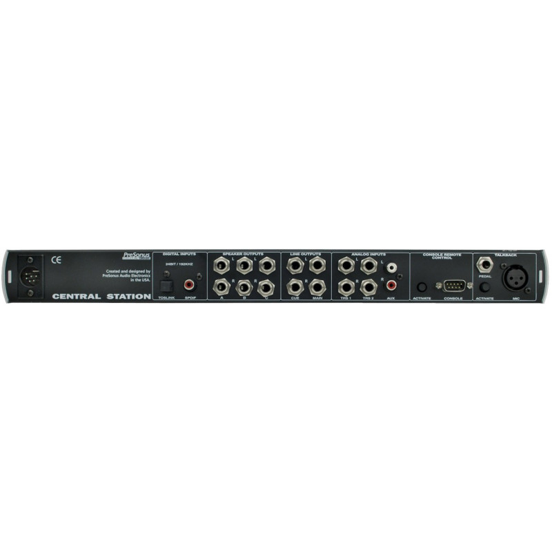 Central Station PLUS является одним из самых популярных продуктов PreSonus для профессиональных студий, потому что она обеспечивает прекрасную комбинацию входов-выходов и функций коммуникации записи, позволяя легко управлять многочисленными источниками сигнала и группами мониторов. Контроллер оснащен пятью независимыми аналоговыми и цифровыми источниками ввода/вывода и пультом ДУ. Имеется двойной быстродействующий 30-сегментный цифровой светодиодный измеритель. Два выхода на наушники MUTE, DIM, INPUT SELECT, CUE.