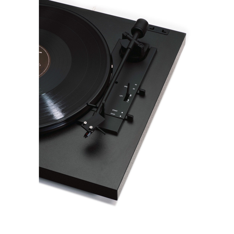 Для начала воспроизведения пластинки достаточно перевести рычажок на передней панели в положение Play. Автоматическое управление тонармом отключается, как только игла звукоснимателя будет помещена на звуковую дорожку пластинки. Это позволяет исключить влияние на качество звука всех дополнительных деталей в конструкции проигрывателя. Автоматика в нем механическая, что также положительно сказывается на отсутствии помех, излучаемых электромагнитными приводами. Проигрыватель имеет электронное переключение скорости 33,1/3 или 45 об / мин и полный автостоп. При желании управлять проигрывателем можно и вручную.