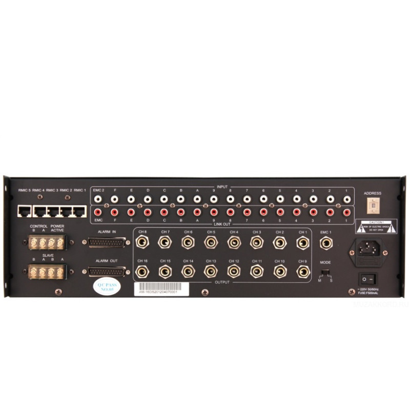 PROAUDIO AM-16D цифровая аудиоматрица позволяет в любой комбинации направлять сигнал с 16 источников на 16 выходов (зон вещания). С ее помощью можно составлять программы вещания фоновой музыки по времени на целые недели и месяцы. Имеются управляющие входы для включения устройства, а также для активация входа сигнала оповещения, при котором все источники будут принудительно отключены и будет активирован вход с сигналом оповещения.Также присутствует вход для подключения микрофонной консоли PROAUDIO AM-16RD, позволяющая направлять сигнал с микрофона на любой выход аудиоматрицы.