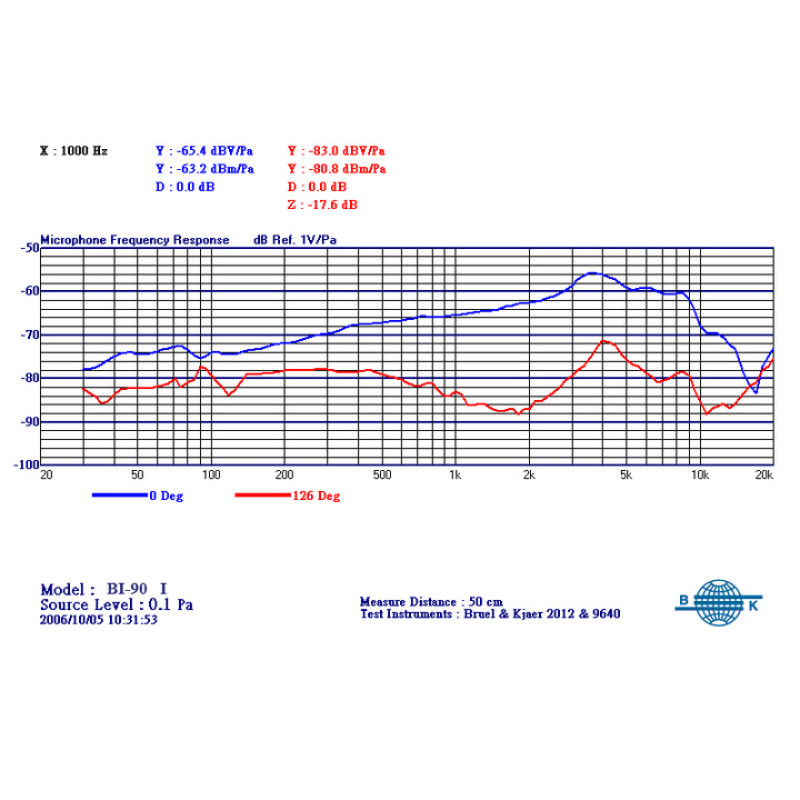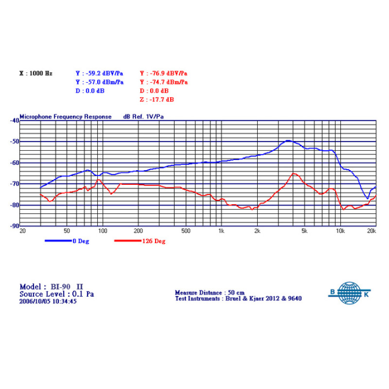 IV. -74 дБ ± 3 дБ AT 1 кГц (0dB =1V/ubar); -72 дБ ± 3 дБ AT 100 Гц (0dB =1V/ubar).