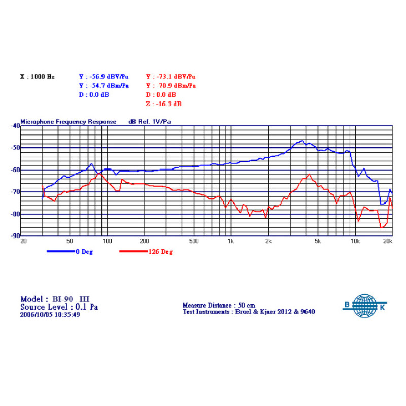 III. -76 дБ ± 3 дБ AT 1 кГц (0dB =1V/ubar); -82dB ± 3dB AT 100 Гц (0dB =1V/ubar)