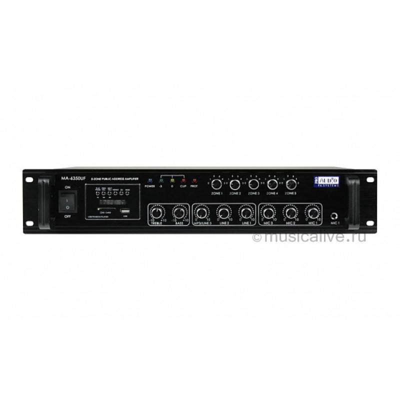 Трансляционный микшер-усилитель, предназначенный для организации фонового вещания в небольших магазинах, павильонах, многозальных ресторанах. Подключенные громкоговорители могут быть разделены на 5 зон с индивидуальной регулировкой громкости в каждой зоне (только на 100 В).