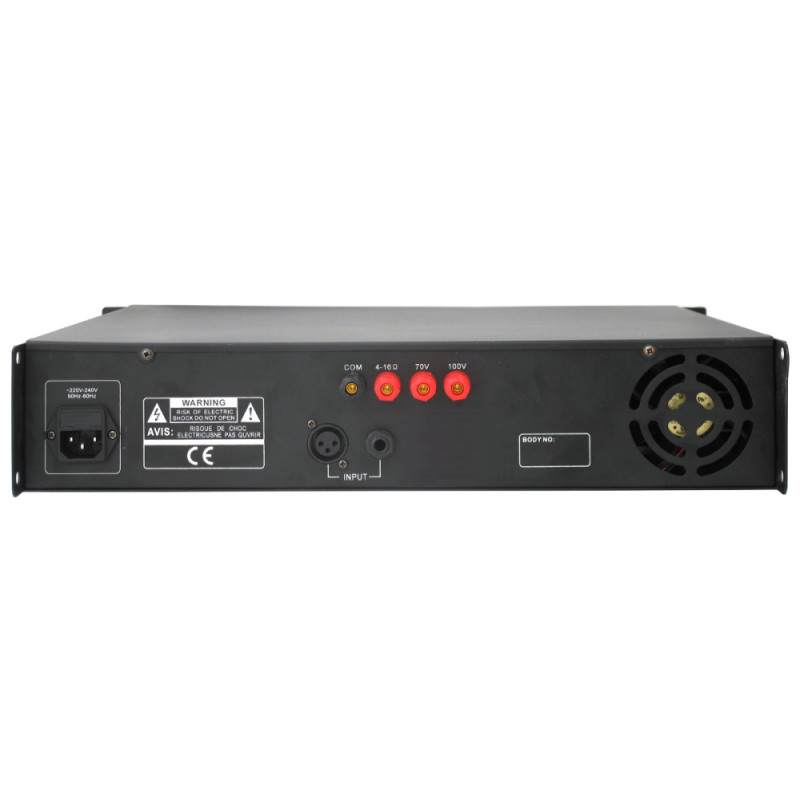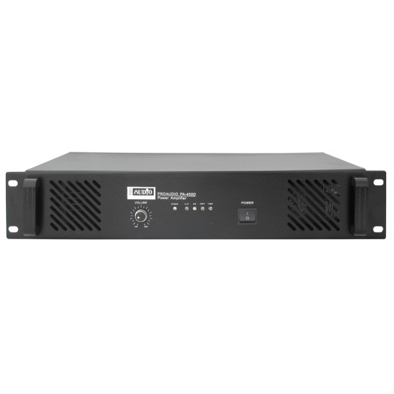 1-канальный усилитель мощностью 450 Вт для систем фонового озвучивания и систем оповещения в крупных торговых и бизнес-центрах, парках, и других заведений с массовым скоплением людей. Возможно подключение как трансформаторных громкоговорителей, так и низкоомных, с сопротивлением не ниже 40 Ом.