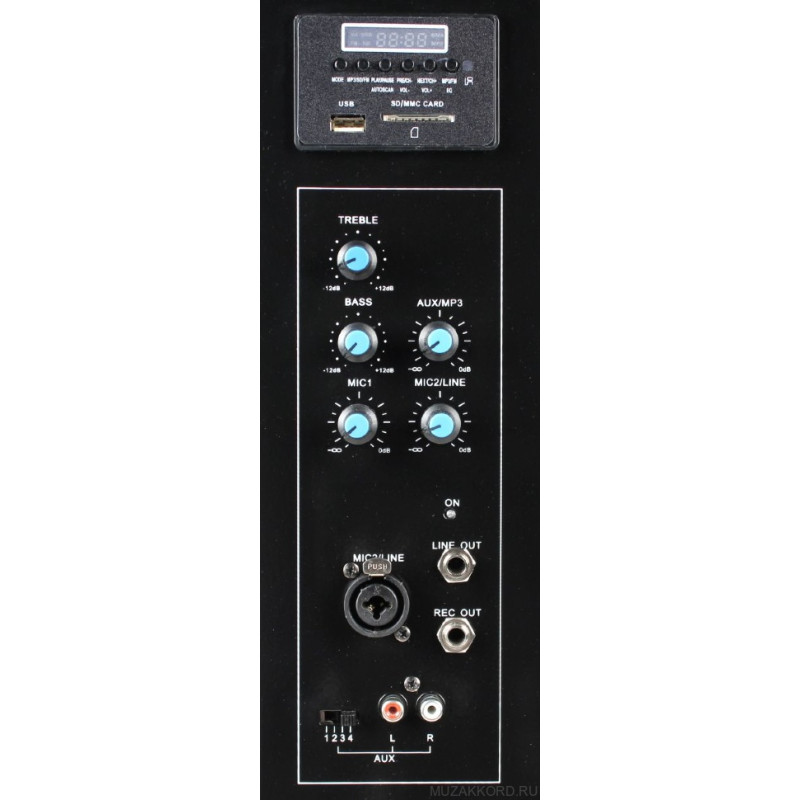 - Микрофонный XLR-вход для подключения дополнительного шнурового динамического микрофона или радиосистемы