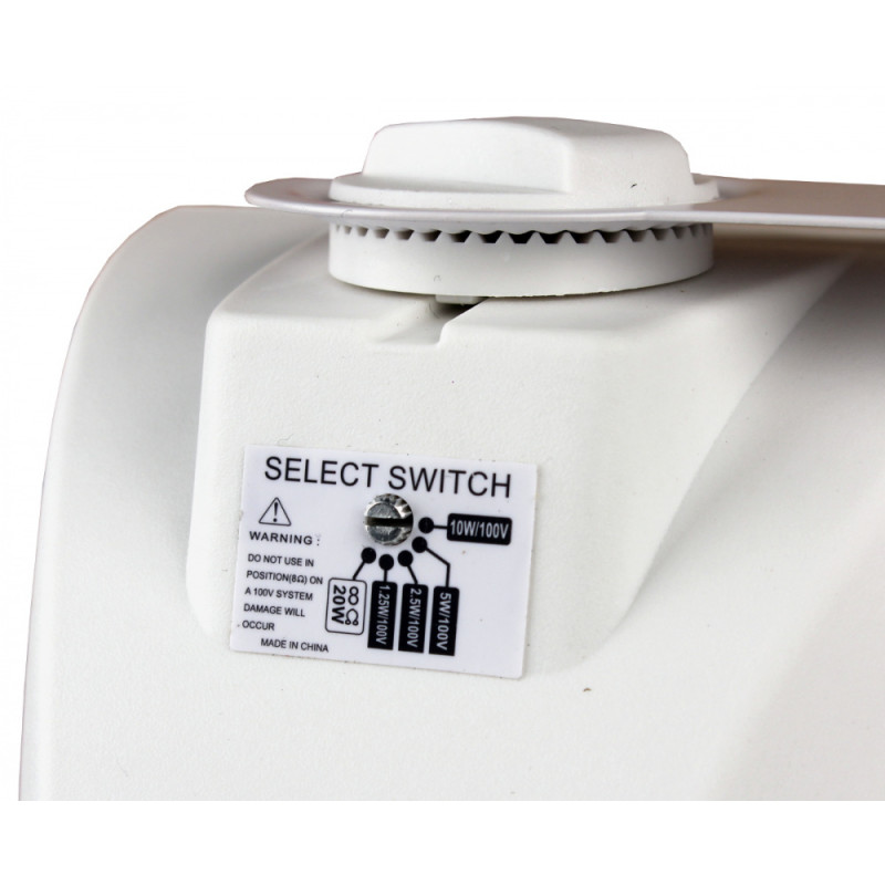 Настенный трансляционный громкоговоритель для организации систем оповещения и фонового озвучивания. Громкоговоритель снабжен поворотным кронштейном. Благодаря 2-полосной конструкции данные системы обладают максимально широким частотным диапазоном и их можно использовать для систем музыкального фонового озвучивания. Предусмотрен 4-позиционный аттенюатор для изменения мощности.