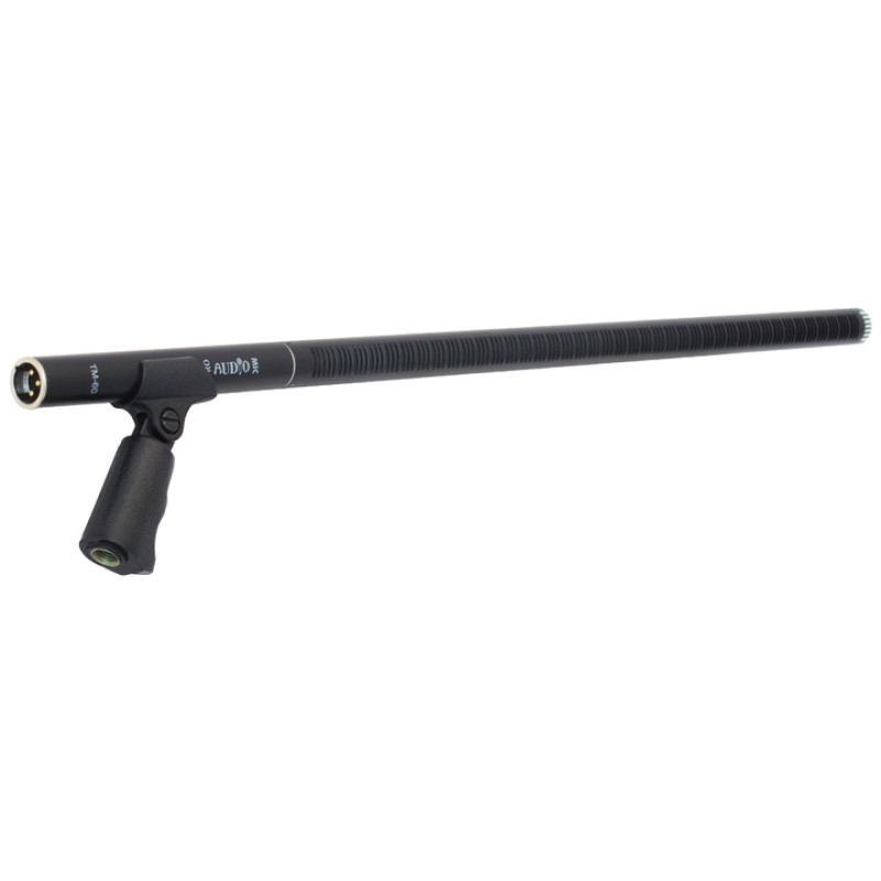 Конденсаторный микрофон «пушка» (Shotgun), гарантирует максимальную направленность, с практически полным отклонением звуков расположенных вне оси направленности микрофона.