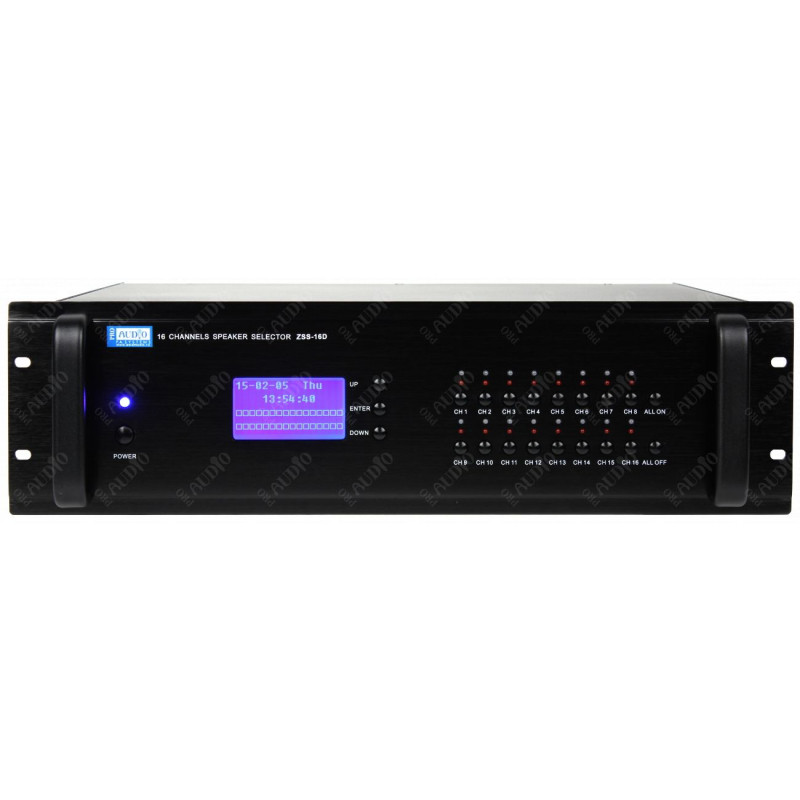 Селектор имеет 4 высоковольтных (70/100В) входа для усилителей с фоновой музыкой и 4 высоковольтных (70/100В) входа для усилителей с тревожными сообщениями. Для подключения громкоговорителей имеются 16 высоковольтных выходов. Селектор имеет 3 режима включения: ручной и автоматический (например, запуск периодических автоматических сообщений). Переключение на усилитель с тревожным сообщением происходит по наступлении тревожного события с помощью короткозамкнутого сигнала. Для автоматического режима есть возможность установки праздников, выходных дней и т.д.