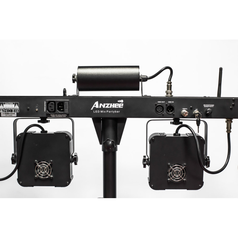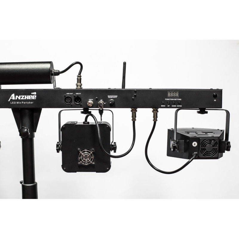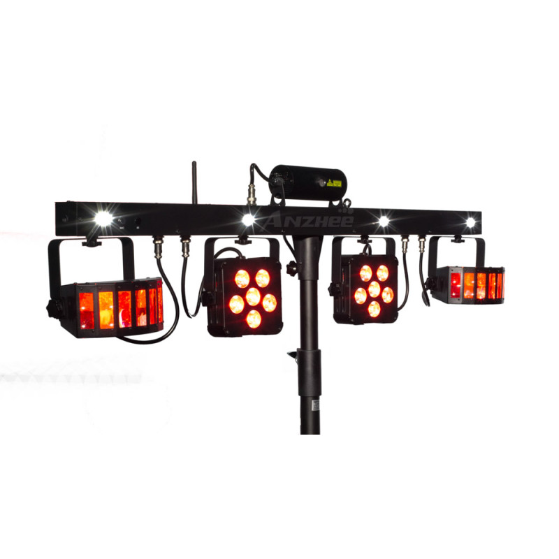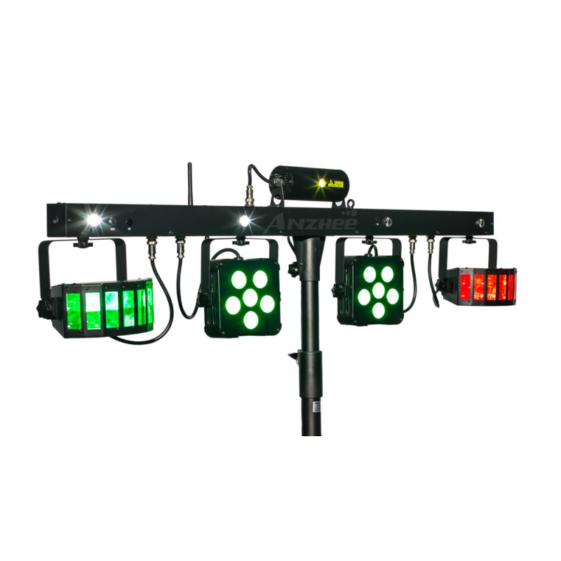 Anzhee PartyBar Pro - Мобильный комплект светового оборудования. 5 световых приборов: 2 прожектора LED PAR, 2 динамических прибора типа Derby, лазер (красный + зеленый).