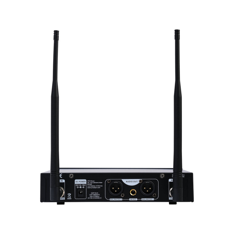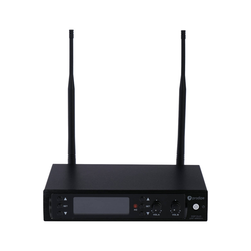 Prodipe ставит себя на службу качеству и четкости вашего беспроводного звучания. Система M850 DSP Duo состоит из приемника в металлическом корпусе с антенной BNC и двумя балансными выходами XLR и небалансным выходом Jack и двух ручных микрофонов УВЧ с легкодоступным экраном отображения каналов и кнопкой отключения звука.