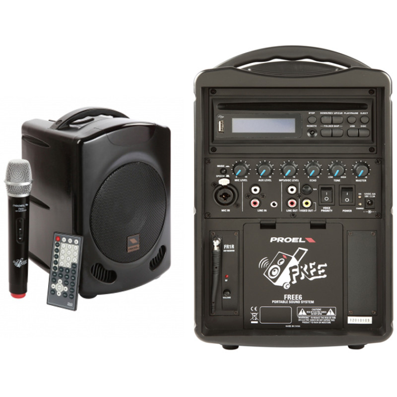 Proel FREE6 Портативная акустическая система с CD/DVD/MP3-плеер, USB-порт,
