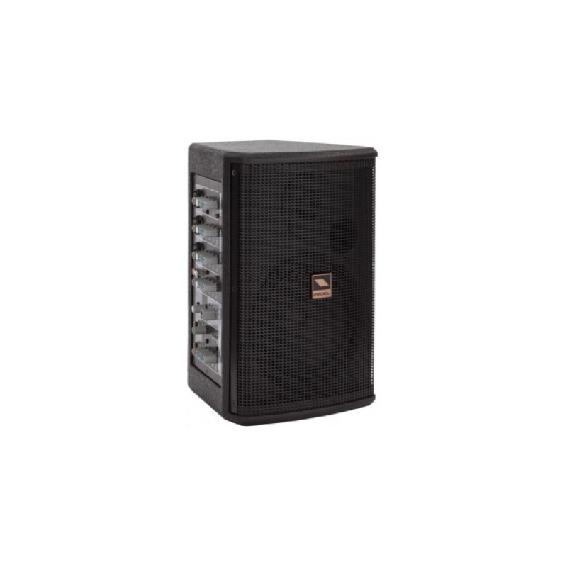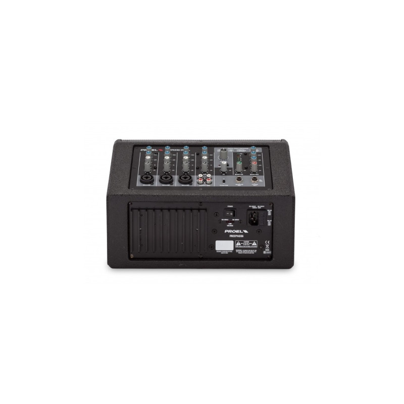 Новая акустическая комбосистема Proel FREEPASS6 состоит из динамиков, усилителя и микшерного пульта, которые расположены в компактном, портативном корпусе из ДВП с металической решеткой. Двухполосная система динамиков включает 1" неодимовый твитер и 6,5" динамик, с общей частотной характеристикой 75Hz-20kHz (-6dB). Номинальная мощность составляет 75 Вт. Так же, существует возможность подключения внешней акустической системы (мощностью 75 Вт) при помощи разъема POWER OUT. Микшер имеет 5 входных разъемов, двухполосный эквалайзер для каждого канала и трехполосный эквалайзер для мастер-линии, мониторный выход и панель цифровых эффектов с 16 пресетами. Установка на стойку производится при помощи специального адаптора (в комплекте) и может быть как вертикальной, так и горизонтальной.
