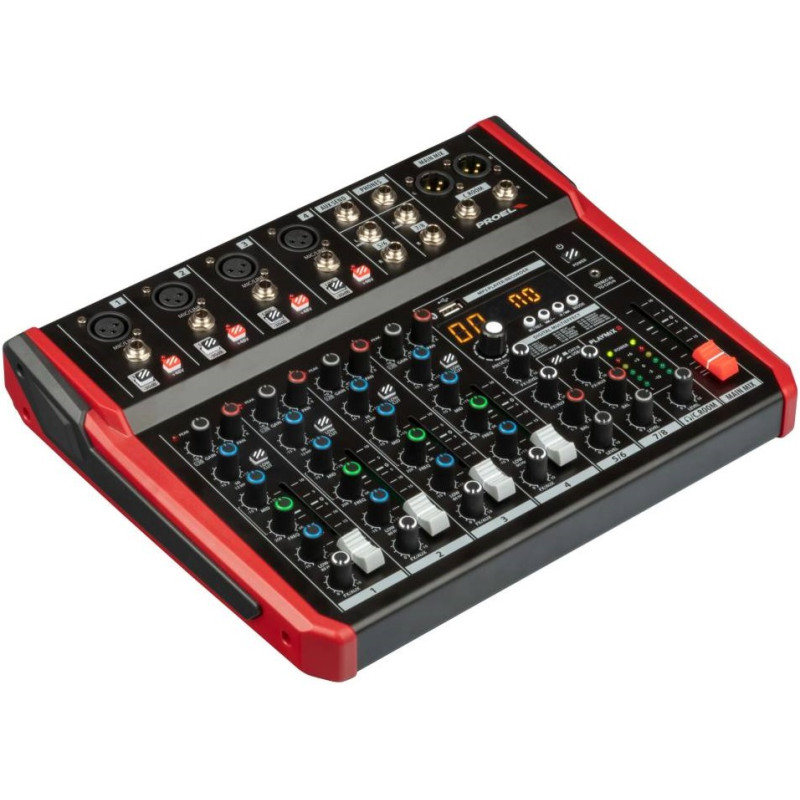 PLAYMIX - серия компактных и стильных микшерных пультов от компании Proel, обладающих полным набором необходимых функций и превосходным качеством звучания по очень выгодной цене. Тщательно разработанные и сконструированные в Италии микшерные пульты размещены в сверхпрочных металлических корпусах, обеспечивающих повышенную надежность для использования в суровой концертной и прокатной деятельности. Моноканалы MIC/LINE оснащены малошумящими микрофонными предусилителями с большим запасом мощности, 3-полосным эквалайзером с разверткой средних частот и HPF, а также 60-мм фейдерами управления для полного контроля над звуком. Все модели серии PLAYMIX оснащены информативным ЖК-дисплеем, высококачественным 24-битным встроенным процессором DSP со 100 студийными пресетами, стерео USB-аудиоинтерфейсом 48 кГц для записи/воспроизведения через ПК, встроенным MP3-плеером с возможностью подключения USB-накопителя и Bluetooth.