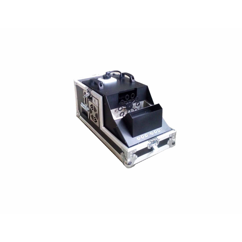 Устройство можно использовать в качестве сразу двух сценических эффектов - дым-машины и машины для мыльных пузырей. Генератор имеет короткое время разогрева - всего 10 минут. Прочный надежный корпус выполнен из железа и нержавеющей стали. Прибор мощностью 1500 Вт имеет два режима управления: ручной и беспроводной. Емкость резервуара для дым-жидкости и резервуара для жидкости для мыльных пузырей составляет по 1 литру каждая. Также устройство имеет дополнительную подсветку, которую обеспечивают 6 светодиодов голубого цвета. Устройство отлично подходит для создания впечатляющих эффектов на сценах, в театрах, клубах и т.п.