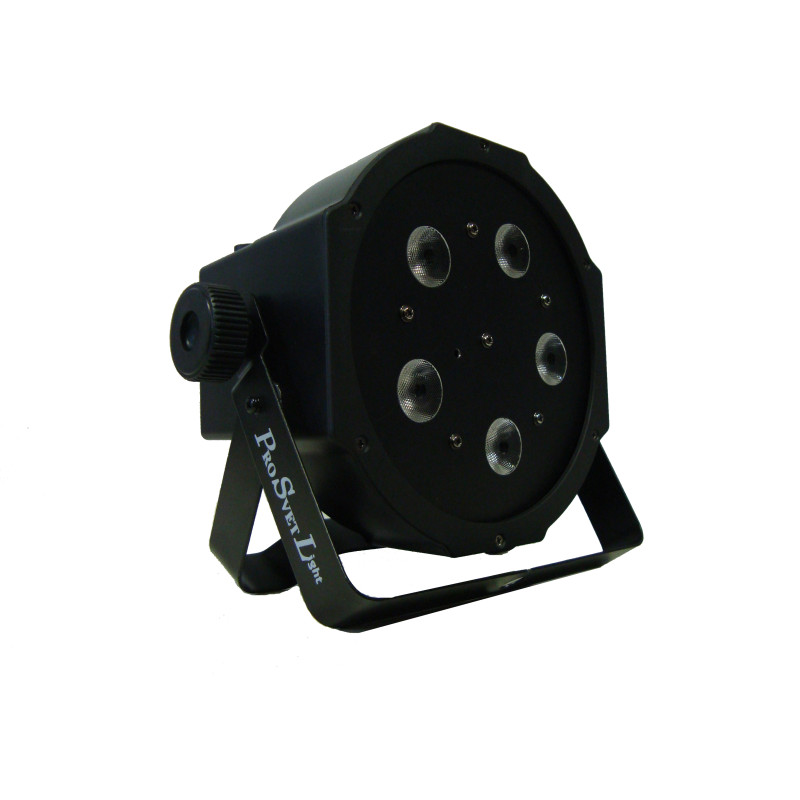 PSL-LED mini Flat PAR 5, PRO SVET прожектор 5X8W RGBW-диода (4в1). Угол луча 35 гр. 8 DMX-каналов, Auto, Sound active, Master/slave. Узкий корпус черного цвета