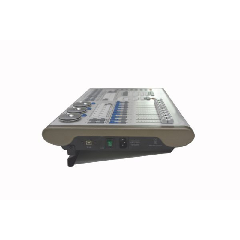 Пульт управления световыми приборами представляет собой высокотехнологичное устройство, предназначенное для профессионального управления освещением на различных мероприятиях и в концертных залах. Он оснащён 20 программируемыми фейдерами, что позволяет пользователю точно настраивать яркость и эффекты световых приборов в реальном времени.