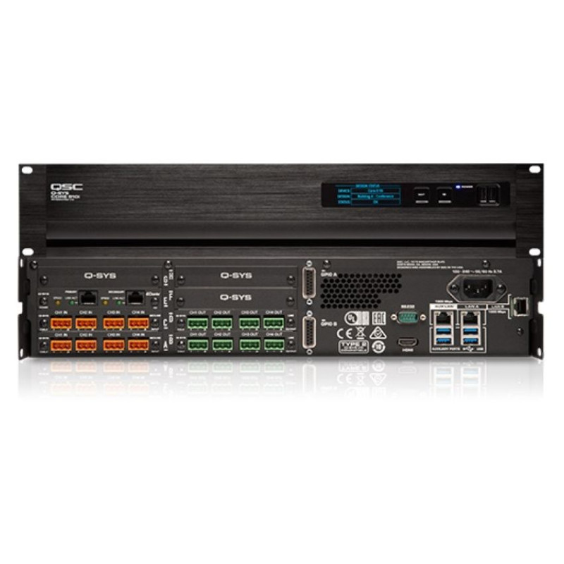 - Режим Q-SYS Core: Обеспечивает вычислительную мощность, достаточную для удовлетворения всех требований к обработке звука, видео и управления, включая интеграцию с новым решением Q-SYS AV-с-USB и встроенную обработку AEC (акустическое эхоподавление). Это позволяет управлять несколькими конференц-залами малого и среднего размера или одним большим пространством.