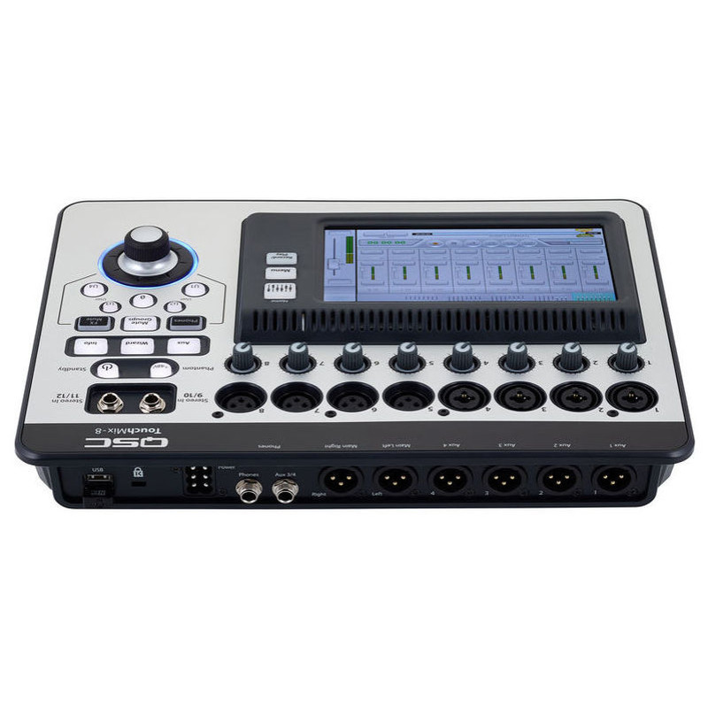 QSC TouchMix-8 цифровой микшер, 20 входов 4 XLR / TRS комбо 6,3мм джек, 12 XLR входов, 2 стерео, 6.3 мм разъем, линейный; 4 Aux, XLR, линейный; 1 стерео разъем; 1 Stereo Cue, разъем, 4-полосный эквалайзер с переменными фильтрами высоких и низких частот, дилэй и компрессор на каждом канале, 8 DCA групп, 8 групп отключения звука, 4 профессиональных эффектов, включая реверберацию, эхо, задержку, хорус , 50 заводских и 50 пользовательских пресетов, IOS приложение для Ipad через Wi-Fi обеспечивающий доступ ко всем функциям микшера, Дисплей: 6,1 "х 3,5" (156 мм х 90 мм) цветной сенсорный экран, USB Wi-Fi адаптер входит в комплект.
