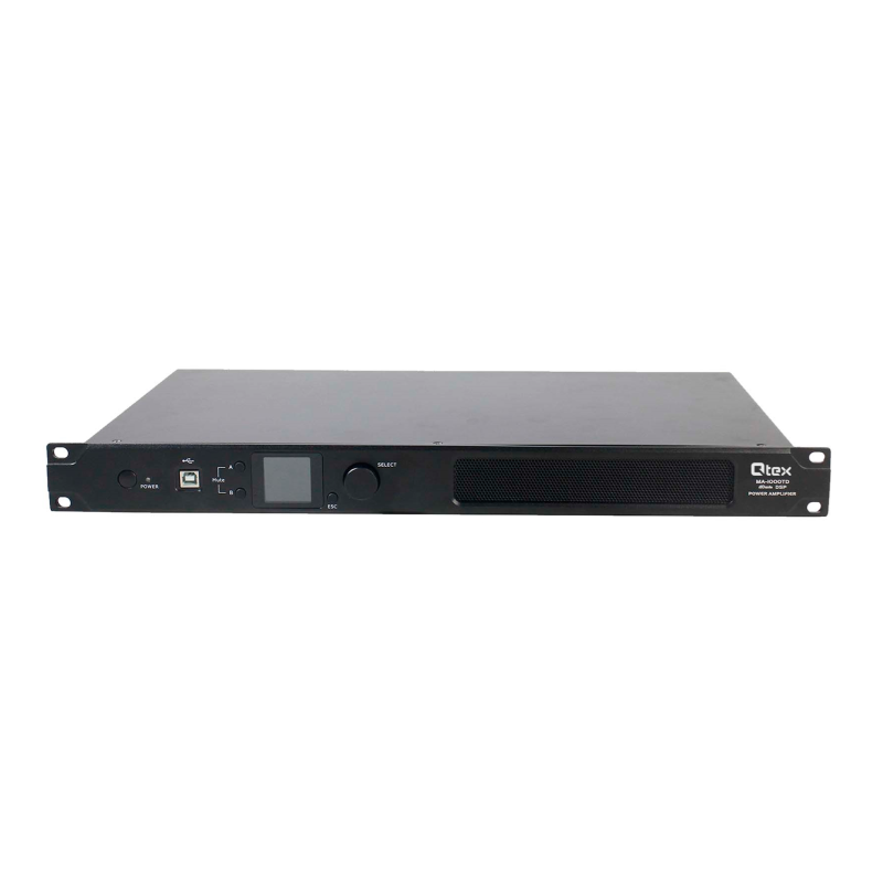 Qtex QAA MA1000TD – Двухканальный усилитель мощности, оснащенный Dante, DSP-процессором и усилительными модулями класса D.