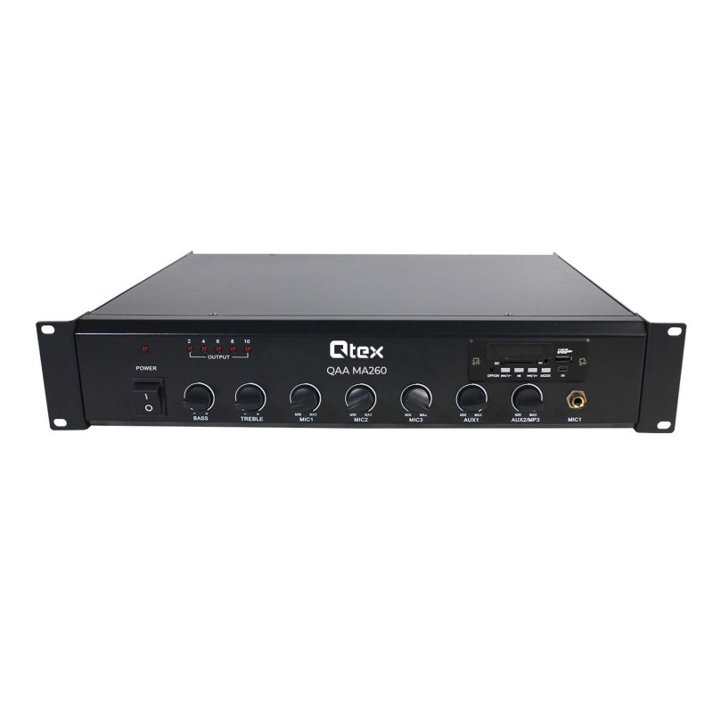 Qtex QAA MA260 – Микшер-усилитель 260 Вт – 100/70 В / 4–16 Ом.